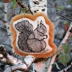 Zvířátko vyryji do lina, otiskávám a přímo na látku jej tisknu sítotiskem, kde se barva vsákne a zapeče do látky. Barva se nevypere a nepouští barvu ani když jí dítě cumlá.