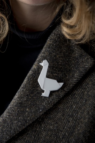 Porcelánová brož kachna je inspirovaná Origami, japonským uměním skládání papíru.