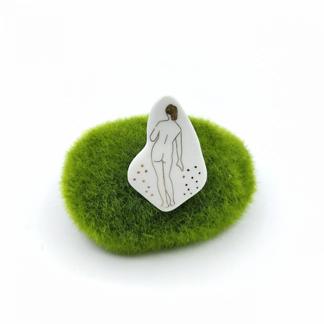 Porcelánová brož se zlatým dekorem. Zapínání z chirurgické oceli.