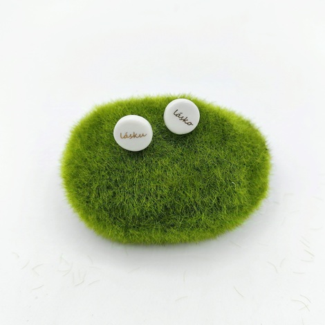 Bílé porcelánové náušnice zdobené zlatým motivem se zapínáním z chirurgické oceli.